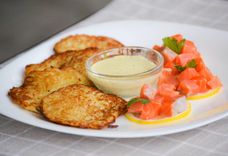 Дранікі з ласосем і тварожным соусам