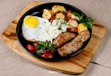 100/150/100 г • Каўбаска, бульба, цыбуля яйка