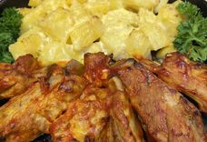 Чылі рэбра з печанай бульбай у соусе хрэн