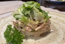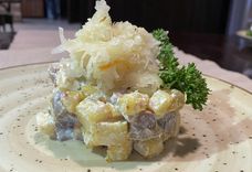 Салат з языком і печанай бульбай