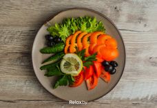 240 г • Агурок свежы, тамат, перац, масліны