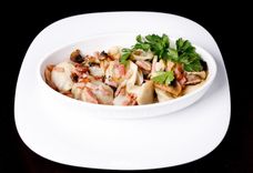 Пельмені запечаныя с цыбуляй і грыбамі